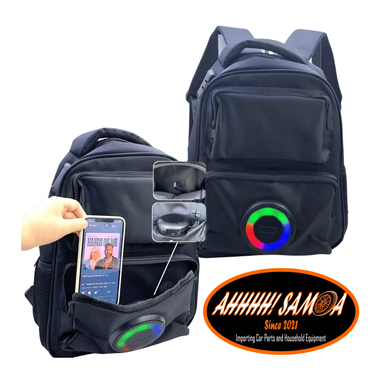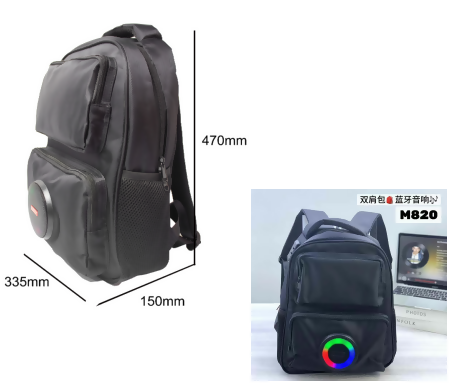 CH-M820 18.5 Inch double strap Bluetooth transmitter School Backpack Bag with microphone 10W speaker, FM RADIO, KAROKE, Automatic charger turn off, and light, with Phone charger and USB/TF card interface with microphone and SECURITY LOCK