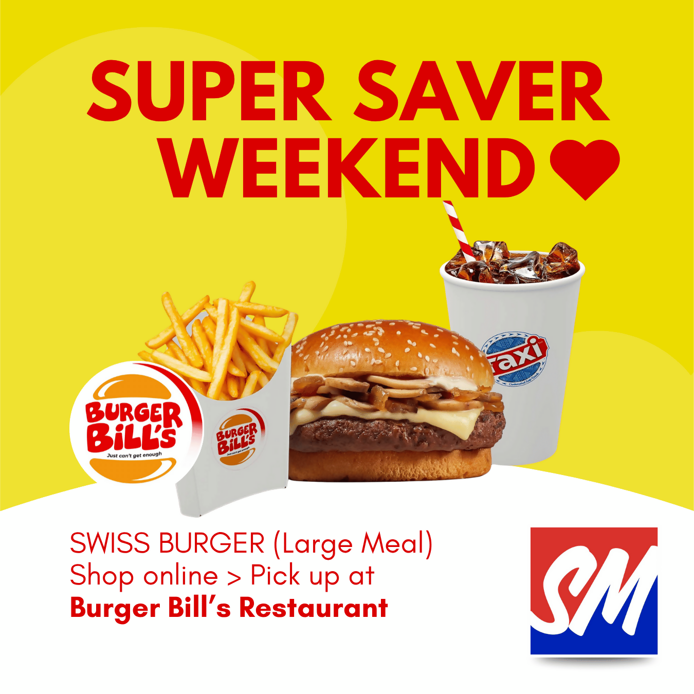 SUPER SAVER WEEKEND! Swiss Mushroom Burger Large Meal "PICKUP FROM BURGER BILLS VAITELE ONLY"