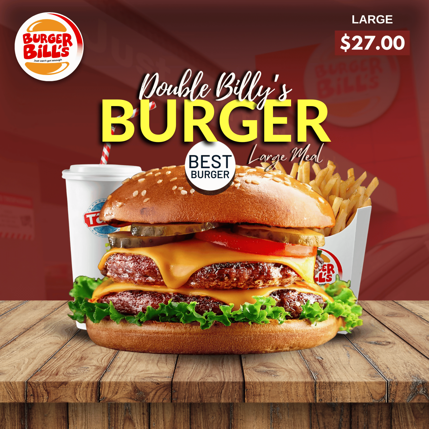 Double Billy's Burger Large Meal "PICKUP FROM BURGER BILLS VAITELE ONLY"