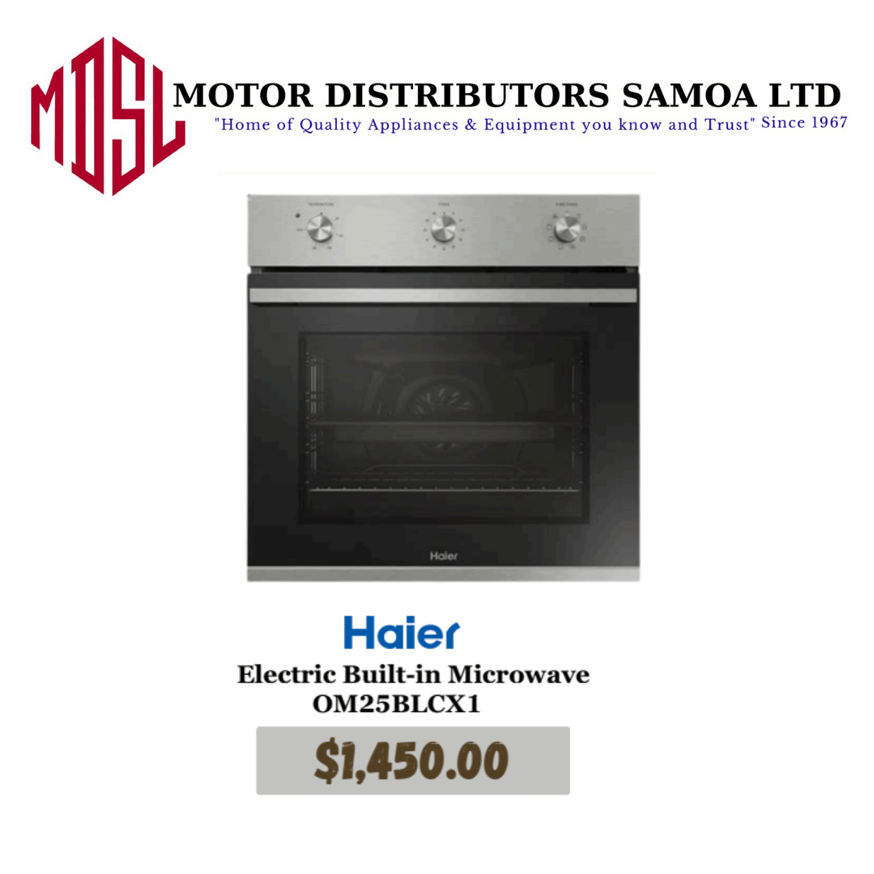 Haier Electric Built-in Microwave OM25BLCX1 "PICKUP FROM MOTOR DISTRIBUTORS SAVALALO"