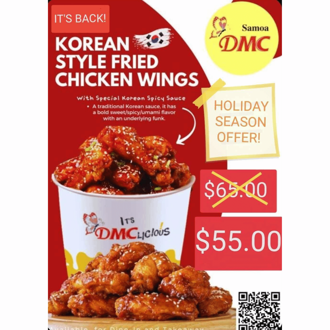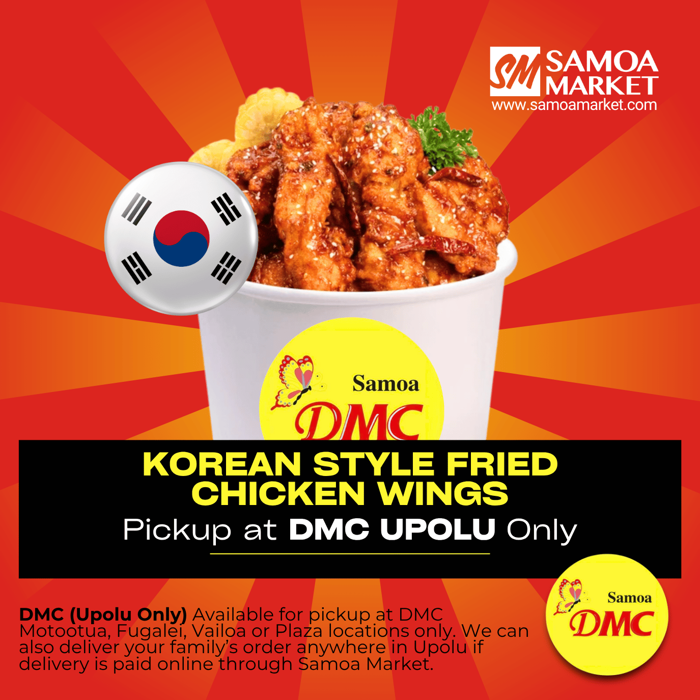 Korean Style Fried Chicken Wings Bucket "PICKUP FROM DMC UPOLU VAITELE, VAILOA, FUGALEI, PLAZA AND MOTOOTUA"