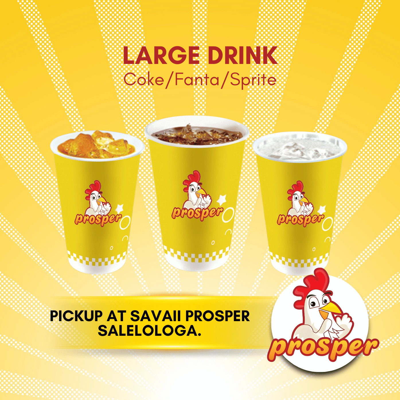 LARGE DRINK (Pickup from Prosper Savaii in Salelologa).Choose from Coke, Sprite or Fanta in-storeEnjoy a tasty selection of food and... Read more