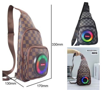 M813 Bluetooth transmitter Single strap pack Bag 10W speaker, FM RADIO, KAROKE, Automatic charger turn off, and light, with Phone charger and USB/TF card interface
