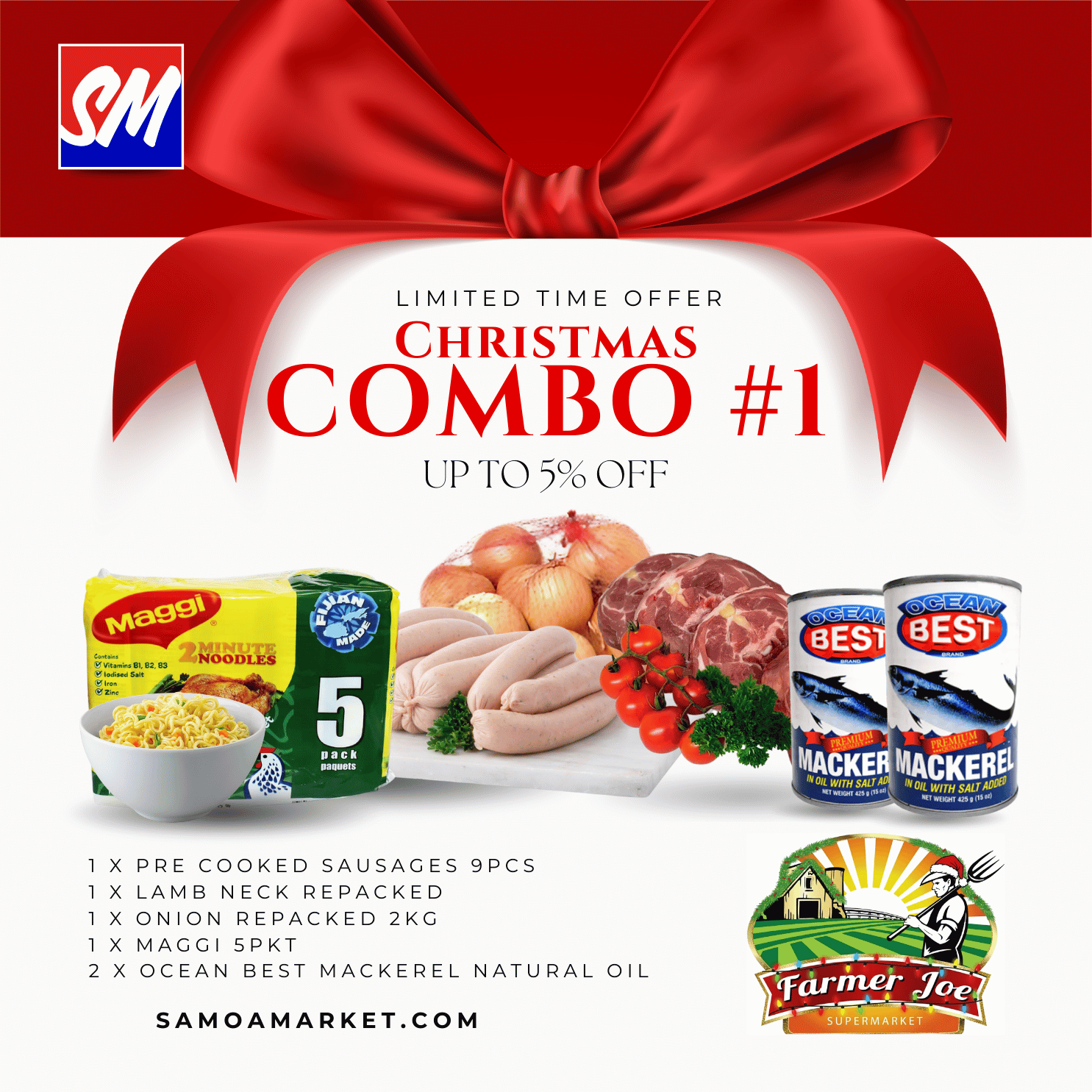 Grab this exclusive Christmas Combo #1 before it's gone—a limited-time offer packed with everything you need for the festive season. Curated specially for the holidays, this bundle delivers exceptional value and convenience. Perfect for families planning ahead, it combines quality essentials at an unbeatable price. Available for pickup only at Farmer Joe Supermarket, Vaitele—secure yours today while stocks last. Don't miss out on this seasonal special designed to make your Christmas preparations easier and more affordable.