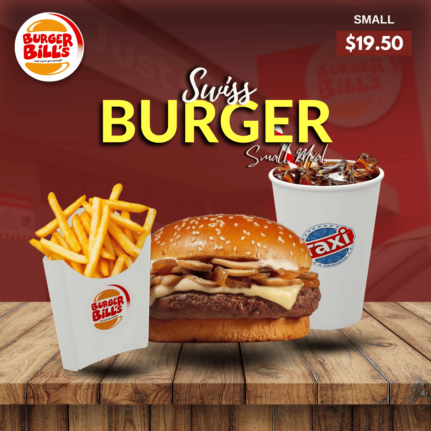 Small Billy's Burger (Beef) Meal "PICKUP FROM BURGER BILLS VAITELE ONLY"